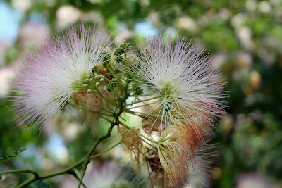 I don't know the name of this one but Maddie sure was impressed by the delicate blooms that covered this tree.